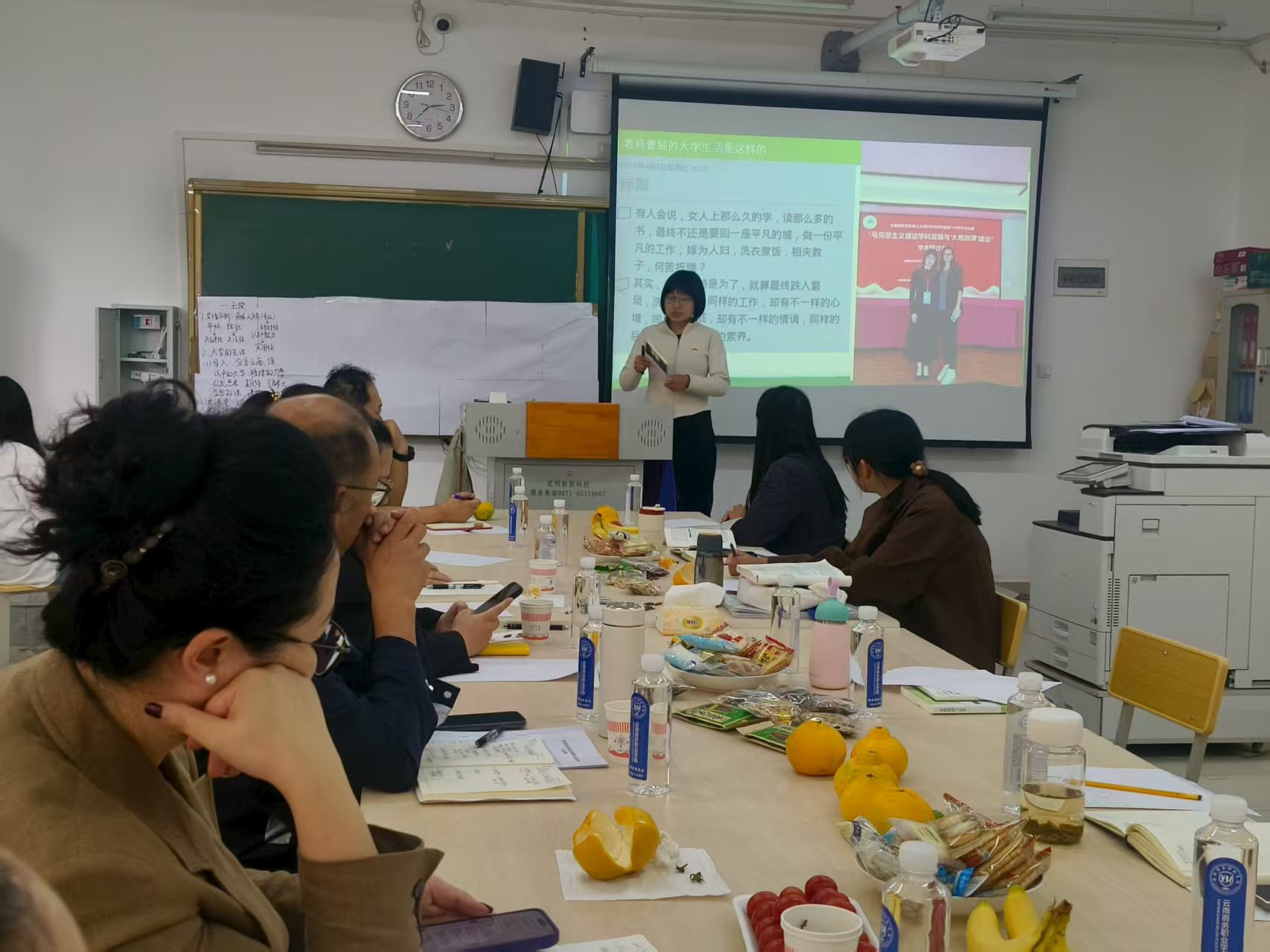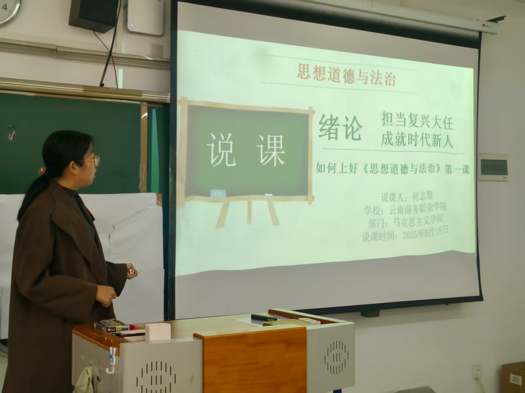 会上,马克思主义学院“思想道德与法治”课8位任课教师结合课程特点,围绕开学第一课的教学设计、内容架构、案例选取及思政元素融入等核心环节依次展开说课。从“新时代青年使命担当”角度切入,详细阐述教学目标、教学重难点及实施路径,既分享了将云南本土红色资源、行业发展案例融入课堂的创新思路,也提出了教学过程中可能面临的困惑,头脑风暴现场研讨氛围浓厚。