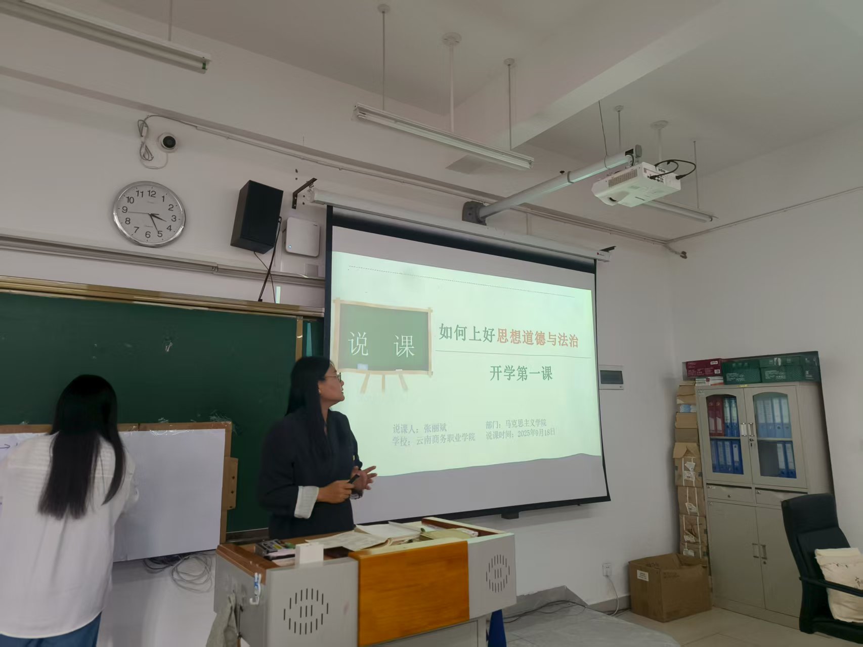为深入贯彻落实立德树人根本任务,精准把握开学第一课的育人导向与教学重点,确保新学期思政课教学工作开好局、起好步,凝聚育人合力,筑牢思政育人根基。9月18日下午,云南商务职业学院马克思主义学院以“怎样讲好第一堂思政课”为主题,组织召开了开学第一课集体备课现场办公会。学校党委书记张向英,常务副校长王琳琳,校长助理王胜兰,教务处处长刘小艳,教务处副处长刘思琴应邀出席本次会议,马克思主义学院全体教师参会,会议由马克思主义学院院长崔霞主持。