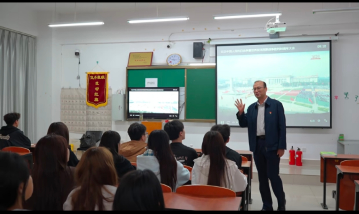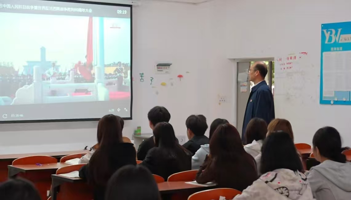 铭记历史、缅怀先烈、珍爱和平、开创未来。9月3日上午9时,纪念中国人民抗日战争暨世界反法西斯战争胜利80周年大会在天安门广场举行。中共中央总书记、国家主席、中央军委主席习近平发表重要讲话。马克思主义学院党支部高度重视,组织全体党员分别参加学校组织的统一收看和带领学生在教室一起观看这一盛大阅兵仪式。